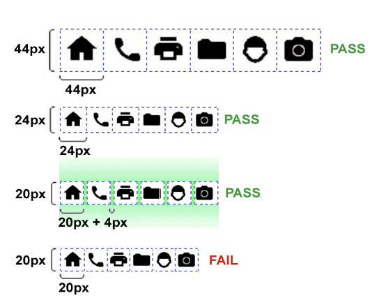 - Ensuring that a small amount of inactive space surrounds touch targets close to the minimum size.